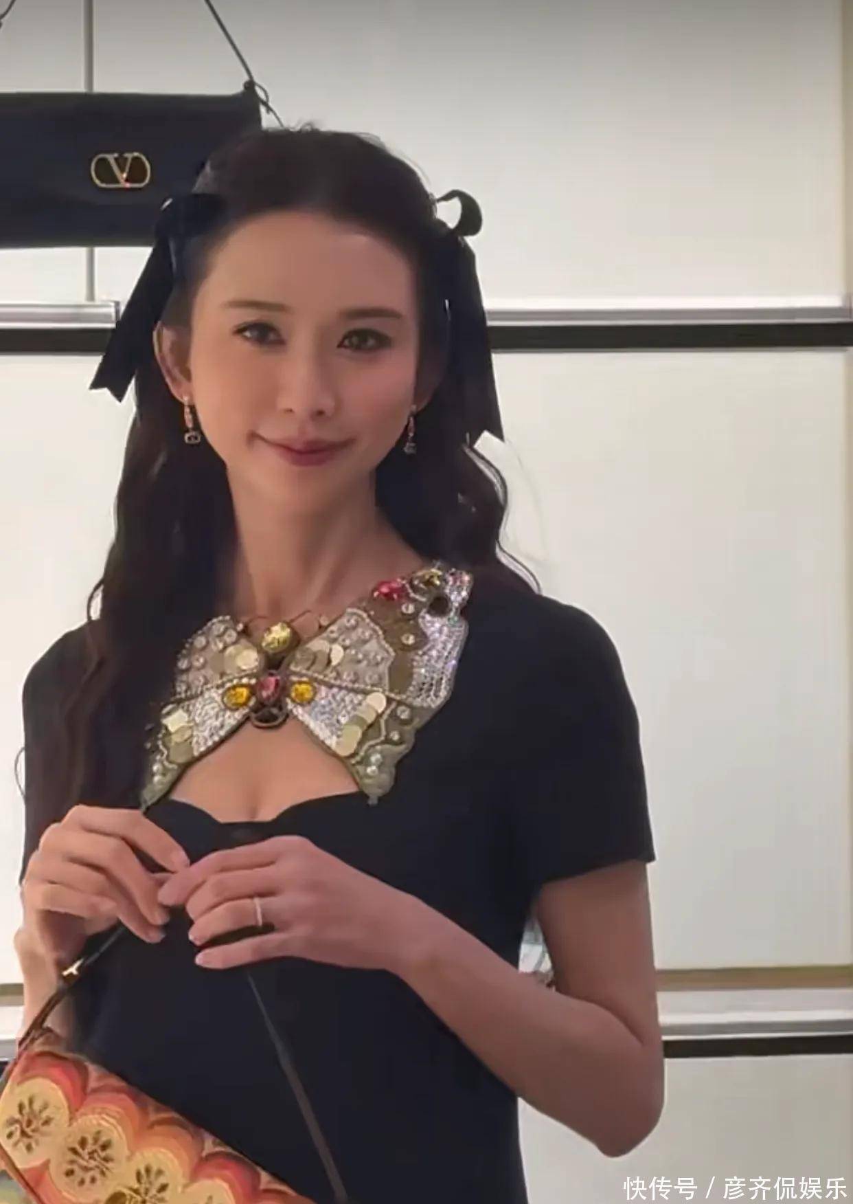 她现在的状态,明明更适合那种“御姐”路线——不用露沟、不靠蝴蝶结讨好谁,一条剪裁精良的深V长裙,一双裸色高跟,发丝随意垂落,就能压住全场。偏偏这次整了个混搭局:发饰和领结走的是日系卡哇伊风,甜美得像是要下课去便利店买布丁;可镂空设计、黑丝搭配深沟高跟鞋,又分明在走性感成熟路线。这两股劲儿拧在一起,像极了一个人在拍照时既想比耶又想摆酷,结果表情僵在脸上,谁都没成。